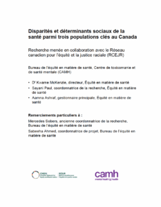 Disparités et déterminants sociaux de la santé parmi trois populations clés au Canada. Rapport de CAMH.